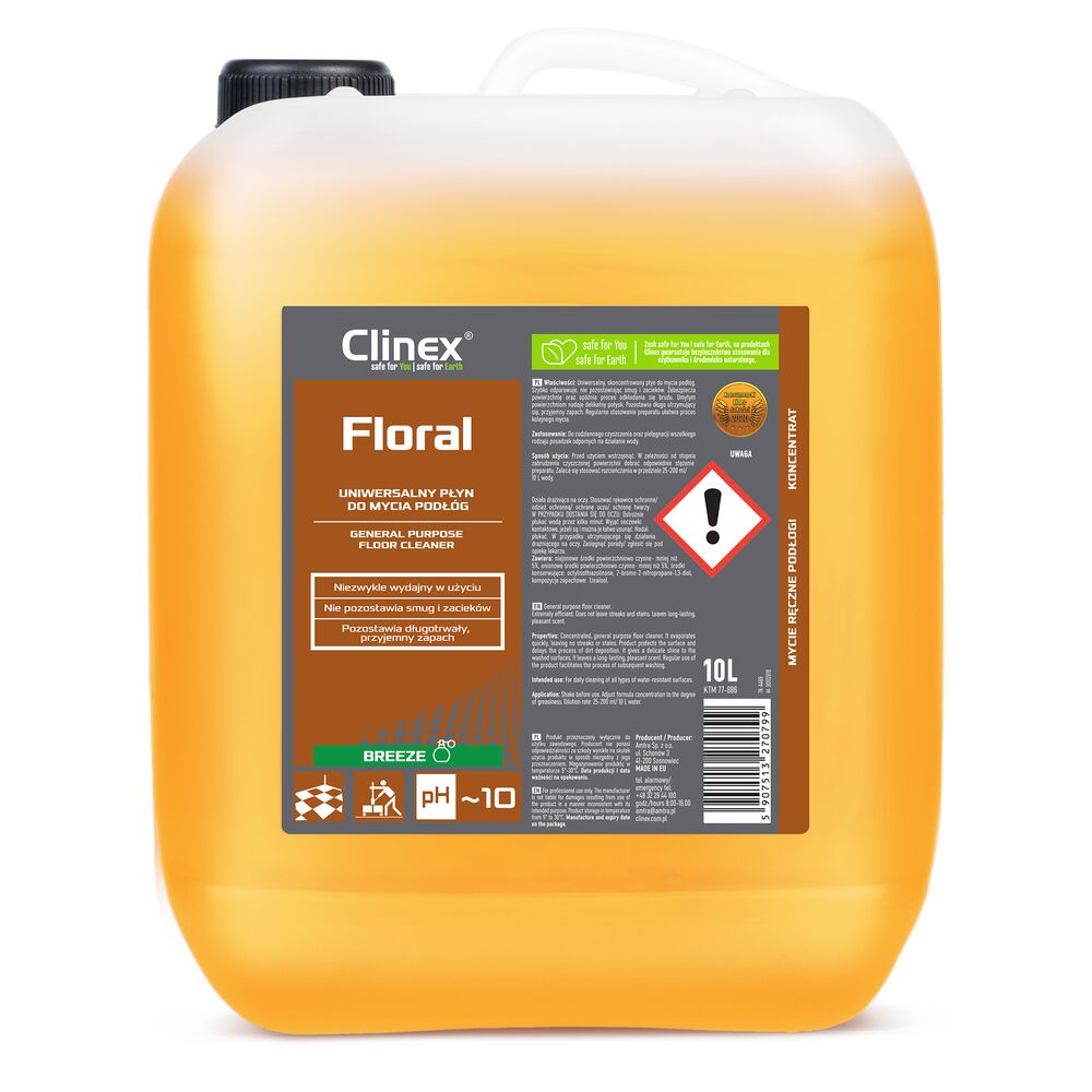 Clinex Floral to uniwersalne, skoncentrowane płyny do mycia podłóg w kilku wesjach zapachowych. Szybko odparowują, nie pozostawiając smug i zacieków. Zabezpieczają powierzchnię oraz opóźniają proces odkładania się brudu. Umytym powierzchniom nadają delikatny połysk. Pozostawiają długo utrzymujący się, przyjemny zapach. Regularne stosowanie preparatu ułatwia proces kolejnego mycia.